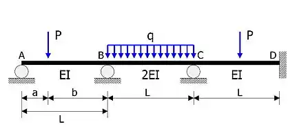 - Flexural rigidities are EI, 2EI, EI respectively.