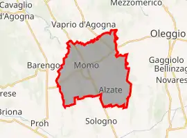 Momo is a comune (municipality) in the Province of Novara in the Italian region Piedmont, located about 90 kilometres (56 mi) northeast of Turin and about 15 kilometres (9 mi) northwest of Novara.