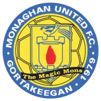 Monaghan United were founded in 1979. Among the club's founding members was Sean McCaffrey who was also the manager of the club when they joined the League of Ireland B Division in 1983–84.[2][3][4][5] In 1985–86 Monaghan United became founder members of the League of Ireland First Division. United played eight seasons in the First Division before winning their first promotion. After finishing third in 1992–93 they became the first League of Ireland club to gain promotion via a promotion/relegation play off. They defeated Waterford United 5–2 on aggregate and were subsequently promoted to the 1993–94 Premier Division. They survived just two seasons in the Premier Division before being relegated at the end of the 1994–95 season. Monaghan United gained promotion to the Premier Division for a second time in 2000–01 after finishing second to Dundalk. This time their stay in the Premier Division last just one season. After managing to win just two league games, they finished last and were relegated following the conclusion of the 2001–02 season.[6][7][8][9] Monaghan United reached the final of the 2010 League of Ireland Cup but lost 1–0 in the final to Sligo Rovers. They also finished third in the 2010 First Division and qualified for the promotion/relegation play off. They subsequently beat Waterford United before losing to Bray Wanderers on penalties.[10][11][12] In 2011, under the management of Roddy Collins, Monaghan United again qualified for the promotion/relegation play off. This time they won promotion after beating Galway United 5–1 on aggregate.[13][14][15] However, midway through the 2012 season, Monaghan United withdrew from the league for "mainly but not only financial" reasons.[16][17][8][18][19]