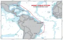 The MONET cable system is a subsea fibre optic telecommunications cable scheduled to be deployed at the end of 2016. Delays in the execution bring the conclusion to December 2017. It will connect the cities of Praia Grande and Fortaleza in Brazil with Boca Raton in the United States.[1][2]