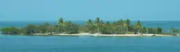 The island has a small beach, many coconut trees, has sandbars around it, and is a good fishing spot.