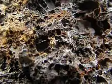 The field produced about 11,000oz of gold extracted from 7,749t of ore. Byles mine was the most significant producer with 3.900oz, followed by Takati (2,900oz)and Baldina (1,400oz) mines. Especially Takati was known for rich specimen gold, the largest piece weighing 216oz.[9] Gold was almost entirely extracted from a stockwork-type mineralisation within the Neoproterozoic Cox sandstone. The quartz veins are rich in goethite, often pseudomorph after siderite. Native gold is mostly associated with goethite. Alluvial mining along the range front of the Mongolata goldfield remained largely unsuccessful.