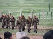 In September 1923,[5] on the outskirts of Urga, the first cavalry school and an artillery school were opened, and a year later, the publication of the army newspaper began.[6] On October 16, 1925, Mongolia adopted a law on universal conscription, and in 1926, the creation of temporary detachments of the people's militia began.[7]