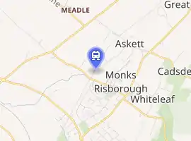 Monks Risborough village adjoins the town of Princes Risborough and the station is on the short branch line that links Princes Risborough with Aylesbury.