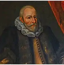 In 1613, William Jones, a prominent merchant and haberdasher, gave the Haberdashers’ Company £6,000, followed by a further £3,000 bequeathed in his will on his death in 1615, to "ordaine a preacher, a Free-School and Almes-houses for twenty poor and old distressed people, as blind and lame, as it shall seem best to them, of the Towne of Monmouth, where it shall be bestowed".[3] Jones was born at Newland, Gloucestershire[4] and brought up in Monmouth, leaving to make a sizeable fortune as a London merchant engaged in the cloth trade with the continent.[lower-alpha 1][6] The motivations for his bequest appear partly philanthropic and partly evangelical; the county of Monmouthshire in the early 17th century had a significant Catholic presence[7] and the local historian Keith Kissack noted, "the priority given to the preacher illustrates [Jones's] concern to convert an area in the Marches which was still, when the school opened in 1614, strongly recusant".[lower-alpha 2][9] The order for the establishment of the school was made, retrospectively by James I in 1616 and decreed "for ever in the town of Monmouth, one almshouse and one free grammar school".[10]