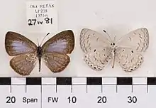The butterfly was earlier known as Lycaenopsis musina Swinhoe.[3]