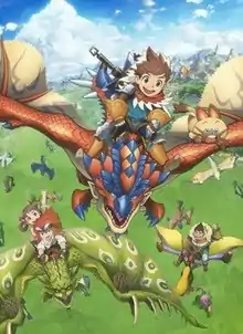 Monster Hunter Stories: Ride On (Japanese: モンスターハンター ストーリーズ RIDE ON, Hepburn: Monsutā Hantā Sutōrīzu Raido On) is a 2016 Japanese anime television series based on Capcom's Monster Hunter action RPG series, specifically the spin-off entry Monster Hunter Stories.[2] The series is produced by David Production,[3][4] directed by Mitsuru Hongo and written by Natsuko Takahashi, featuring character designs by Takuya Saito and music by Masaru Yokoyama. It began airing on Fuji TV on October 2, 2016.[5]