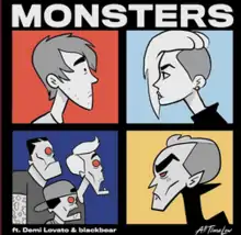 "Monsters" is a song by rock band All Time Low featuring Blackbear and Demi Lovato. The song was written by FRND, Kevin Fisher, Jack Barakat, Alex Gaskarth, Blackbear and Demi Lovato, and produced by Zakk Cervini and Gaskarth. The song was originally released on April 3, 2020, by Fueled by Ramen, as part of the band's eighth studio album Wake Up, Sunshine. Following 11 weeks at number one on Billboard's Alternative Airplay chart, the song was re-released with vocals by Demi Lovato on December 4, 2020.[2] It debuted on the Billboard Hot 100 at number 88 and peaked at number 55.