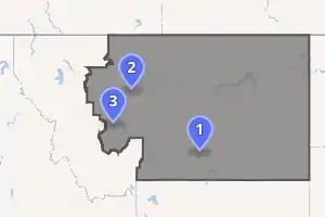 ![]() Montana's 2nd congressional district will once again exist starting in January 2023 and will cover eastern Montana. Points indicate major cities in the district, sorted by population (Billings, Great Falls, and Helena). | |||