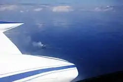 By 3 September 2009, the Australian Maritime Safety Authority (AMSA) reported that the slick was 170 km (106 mi) from the coast of Western Australia, and moving closer to the shore. The slick was also reported to have spread over 6,000 km2 (2,300 sq mi) of ocean with evidence that the oil was killing marine life.[25] Reports that the slick had spread to within 120 km (75 mi) of the Northern Territory coastline were dismissed as incorrect, with the AMSA stating that the discoloured water was likely to be a natural phenomenon, such as an algal bloom or coral spawn.[26] Daily overflights by the Australian authorities in September and October 2009 identified isolated patches of weathered oil and sheen within Indonesian waters with small patches seen 94 kilometres south east of Roti Island. At the time the main spill was located about 248 kilometres from the Indonesian coastline.[27]