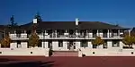 This adobe, California's First Theater, was built by English seaman Jack Swan in 1846-47 as a lodging house and tavern for sailors. He built the wood portion of the building in about 1845. He added the adobe portion in 1847, as the actual theater. It was used as a theatre in 1850 when U.S. Army officers stationed in Monterey, i.e., Lt. Alfred Sully, and others, produced plays under the direction of Actor/Manager Charles Bingham, and named it "The Union Theatre for the production of Melodramas". Swan built a small stage and provided benches, whale-oil lamps, candles for footlights and blankets as curtains. In later years, the First Theatre was used as a lodging house for whalers, but fell into disrepair after Swan's death in 1896. It was purchased in 1906 by California Historic Landmarks League and donated to the State of California. In 1937 and until recently, the Troupers of the Gold Coast staged the first melodramas since the 1850s. Because of structural issues, the building is closed to the public except for the Christmas in the Adobes event in December.[15] This building is a California Historical Landmark (#136).[16]