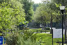 In its early years the Institute operated at Abasolo 858 Oriente in a large, two-story house located a block and a half away from Zaragoza Square, behind the city's Metropolitan Cathedral.[19] As these facilities soon proved to be insufficient, it started renting out adjacent buildings and by 1945 it became apparent that a university campus was necessary. For that reason, a master plan was commissioned to Enrique de la Mora and on February 3, 1947, what would later be known as its Monterrey Campus was inaugurated by Mexican President Miguel Alemán Valdés.[1]