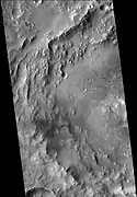 ![]() Montevallo Crater, as seen by THEMIS. Image shows a landslide on the north rim. | |