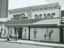 The two addresses have undergone many interior and exterior renovations over the years. They have housed drugstores, restaurants, shoemakers, and clothing stores. The building is now occupied by Dave’s A Pawn Shop and a clothing store. With the arrival of the automobile and the paving of streets, the wooden sidewalks, post, and roofs were removed and conventional sidewalks were constructed.[5] Today, the wooden facade of the building lies beneath a modern sign but the cornice is clearly visible. 216-218 S. El Paso Street is a classic example of western architecture from the boom era of the 1880s.