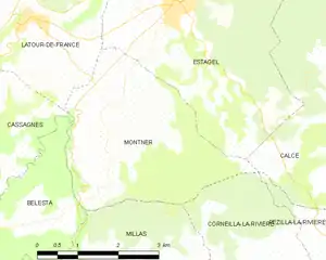 Montner is located in the canton of La Vallée de l'Agly and in the arrondissement of Perpignan.