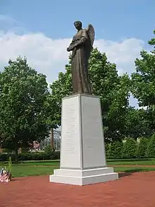 A memorial was erected on the grounds of Montoursville High School composed of a statue of an angel (sculpted by James Barnhill of Asheville, North Carolina) on a base engraved with the names of the 21 local victims and a brief recounting of events. The memorial stands in a circular grove of 21 trees, one for each person lost. The angel was chosen because onlookers thought a cloud seen above the high school on July 21, 1996, resembled an angel, with 21 small clouds at its feet. Randolph Hudson of State College was chosen as the memorial designer and Beth Hershberger served as landscape designer.