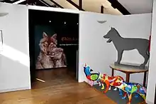 A museum in the Chabrières park is the House of the Wolf. It covers 250 m2 (2,700 sq ft) and exhibits a wealth of information about wolves; from the tales, myths and legends, to scientific materials, related to all aspects of the wolves' life and the human/wolf relationships.[23] Also highlighted in the museum exhibition are the history of destruction of wolves' habitats[24] and the recent positive changes, leading to the movement of protection of the wolves around the world, institutionalized by an international agreement which took place in Washington and Bern.[25] The latest works of scientists, studying wolves' physiology and psychology, including vocal behaviours, are also well represented in the museum.