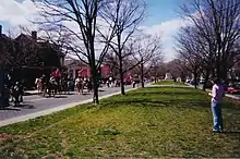 Prior to 2020, Monument Avenue had been the site of several annual events, particularly in the spring, including an annual Monument Avenue 10K race.[8] At various times (such as Robert E. Lee's birthday and Confederate History Month) the Sons of Confederate Veterans would have gathered along Monument Avenue in period military costumes. Monument Avenue had also been the site of "Easter on Parade",[9] another spring tradition during which many Richmonders would have strolled the avenue wearing Easter bonnets and other finery.