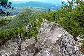 ![]() View looking South East from the Devils Pulpit on Monument Mountain near Great Barrington, MA. | |