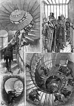 The viewing platform near the top of the Monument is reached by a narrow winding staircase of 345 steps. A mesh cage was added in the mid-19th century to prevent people jumping to the ground, after six people died by suicide there between 1788 and 1842.[2]