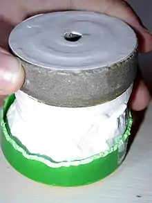 The moo box is a toy or a souvenir. When turned upside down, it produces a noise that resembles the mooing of a cow. The toy can be configured to create other animal sounds such as the meowing of a cat, the sound of a bird, or the bleat of a sheep.