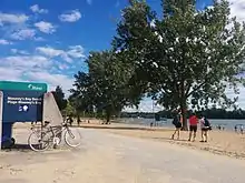 In the summer, Mooney's Bay Beach is one of the City of Ottawa's four supervised beaches. The city's Parks, Recreation and Cultural Services Department set up a swimming area, which is supervised by trained lifeguards from 12pm-7pm each day, from the third week in June until the third week in August.[2] From mid-May until early September, volleyball nets can be rented per hour or for the day and stand-up paddleboards (SUPs) can be rented by the hour. This can be done from beach and lifeguard staff.[2] After rainfalls, swimming is often prohibited due to excessive bacteria. The City of Ottawa posts water quality results on its websites and signs are posted when swimming is unsafe.