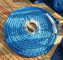 Some ships use wire rope for one or more of their mooring lines. Wire rope is hard to handle and maintain. There is also risk associated with using wire rope on a ship's stern in the vicinity of its propeller.