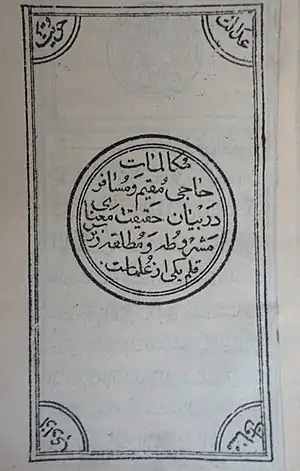 ![]() Lithography of Moqim va Mosafer treatise | |