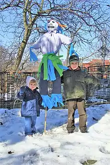The tradition of burning or drowning an effigy of Marzanna to celebrate the end of winter is a folk custom that survives in the Czech Republic, Poland, Lithuania, and Slovakia. In the past, the festival was held on the fourth Sunday of Lent. In the 20th century the date March 21 was fixed[5] (March 20–21). The rite involves preparing an effigy in female clothing, and either setting it on fire or drowning in a river (or both). This is often performed during a field trip by children in kindergarten and primary schools.[6] The effigy, often made by the children themselves, can range in size from a puppet to a life-size dummy. This ritual represents the end of the dark days of winter, the victory over death, and the welcoming of the spring rebirth.