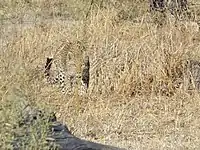 Moremi Game Reserve, although not one of the largest parks, presents insights and views even for the most experienced of travelers. Its habitats are surprisingly diverse, combining mopane woodland and acacia forests, floodplains and lagoons. It is home to nearly 500 species of bird (from water birds to forest dwellers), and a vast array of other species of wildlife including lion, leopard, African bush elephant, African buffalo, black rhinoceros, hippopotamus, giraffe, plains zebra, blue wildebeest, cheetah, spotted hyena, black-backed jackal, common warthog, impala, and lechwe. The Moremi area is considered a significant habitat for African wild dog[2] and the population there have been the subject of a project run in the area since 1989; thus this species is often seen wearing collars emplaced by researchers.
