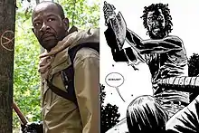 ![]() Morgan Jones, as portrayed by Lennie James in the television series (left) and in the comic book series (right). | |