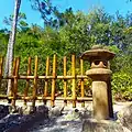 The Roji-en Japanese Gardens were designed to complement the museum. The six gardens making up Roji-en are inspired by famous garden styles throughout Japan's history.[1] They were designed by Hoichi Kurisu and completed in 2001.[1] The six historical gardens are as follows: Shinden Garden, Paradise Garden, Early Rock Garden, Karesansui Garden, Hiraniwa Garden, and Modern Romantic Garden. The Shinden Garden is inspired by the gardens of the Heian period of the 9th–12th centuries. During this time Japanese nobility used Chinese garden designs that featured lakes and islands; this style of garden was usually viewed by boat. The Paradise Garden comes from the Kamakura and Muromachi periods. The gardens were designed as temples to the Buddha and represented Buddhist Heaven. The Early Rock Garden is also from the Muromachi period. This style of gardens was influenced by Chinese landscape art and the early concept of Zen. The Muromachi period Karesansui gardens are in true Zen style. These gardens were designed not to be walked through, but instead to be viewed from temples and reflected on. The "dry landscape" styles was almost empty of plants, instead having rocks and gravel. The Edo period was known for the Hiraniwa Flat Garden style. These gardens were hybrids of the late rock garden and tea garden. This garden style is known for its accents, such as pagodas, lanterns, and stepping stones. The last historical garden featured at Morikami is the Modern Romantic Garden. This garden originated during the Meiji period. Naturalism and Western influences were what spurred the creation of this garden style.[6]