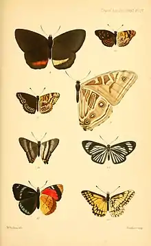 | Figure 9 (largest butterfly on plate, only one wing shown), underside, from the plate accompanying the original description | |