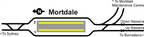 Mortdale station opened on 20 March 1897 being relocated north to its current location on 14 September 1922 when a new deviation of the Illawarra line opened.[2][3] South of the station lies the Mortdale Maintenance Depot.