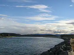 ![]() Moruya River looking upstream from the breakwater on the northern head of the river. | |
