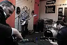 ![]() Moscow Circus rehearsal in 2016, left to right: Pete Temperton, Jonathan Beckett, Tom Parratt, Mark Paulson. | |