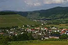 In the past two decades red wine production, especially from the Spätburgunder (Pinot noir), has increased in the Mosel and throughout the German vignoble and has become of increasing interest to the international wine community.[6] Because of the northerly location of the Mosel, the Riesling wines are often light, tending to lower alcohol, crisp and high in acidity, and often exhibit "flowery" rather than or in addition to "fruity" aromas. Its most common vineyard soil is derived in the main from various kinds of slate deposits, which tend to give the wines a transparent, mineralic aspect, that often exhibit great depth of flavor.[7] In the current era of climate change much work has been done to improve and gain acceptance for completely dry ("Trocken") Rieslings in this region, so that most of the more famous makers have found acceptance for such wines, particularly in Europe.[8]