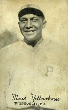 Moses J. "Chief" Yellow Horse[lower-alpha 1] (January 28, 1898 – April 10, 1964) was an American professional baseball pitcher. He played two seasons in Major League Baseball for the Pittsburgh Pirates, 1921 and 1922. An Oklahoma native, Yellow Horse, a Native American from the Pawnee tribe, was the first full-blooded American Indian to have played in the major leagues.[1][2]