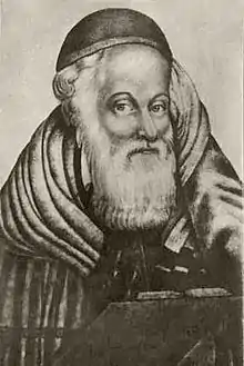 Moshe Teitelbaum (1759 – 17 July 1841) (Hebrew: משה טייטלבוים), also known as the Yismach Moshe, was the Rebbe of Ujhely (Sátoraljaújhely) in Hungary. According to Leopold Löw, he signed his name "Tamar", this being the equivalent of Teitelbaum, which is the Yiddish for "palm-tree" (compare German "Dattelbaum").[1] An adherent of the Polish Hasidic Rebbe, Yaakov Yitzchak of Lublin (as well as of Sholom Rokeach of Belz[2]), Teitelbaum was instrumental in bringing Hasidic Judaism to Hungary. Though initially opposed to Hassidism, after his son-in-law introduced him to Horowitz, he soon became an adherent.[3]
