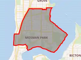 Mosman Park is a western suburb of Perth, Western Australia on the north bank of the Swan River in the local government area of the Town of Mosman Park. It was historically known as Buckland Hill (1889-1909), then Cottesloe Beach (1909-1930) and again Buckland Hill (1930-1937). From 1937 it was named Mosman Park, derived from Mosman in Sydney, the birthplace of Richard Yeldon, a member of the Buckland Hill Road Board.[3] Mosman Park is now considered an affluent suburb, but prior to the 1970s was one of Perth's major industrial centres.