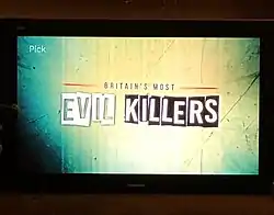 Britain's Most Evil Killers and World's Most Evil Killers are British crime television programmes on Pick (TV channel). First aired in 2017, the series are narrated by Fred Dinenage, and focus on the most notorious and depraved serial killers that were convicted during the past 30 years.[1]