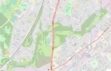 The source of Moston Brook is now hidden. Its most upstream part is fully obscured in two culverts, the South Culvert and the North Culvert.[2] The South Culvert is what remains of one of the brook's upstream tributaries, Bower Brook, which flows from the Werneth area[3] and past a pumping station in South Chadderton.[2] Another tributary, Hole Bottom Brook, rises in north Hollinwood and runs to the Failsworth boundary near the Rochdale Canal, where a short section is still in daylight.[2][3][4] The North Culvert was connected in the 1990s in order to take run-off from a newly constructed part of the M60 motorway.[4] The confluence of Bower Brook and Hole Bottom Brook is considered the start of Moston Brook proper.[4]
