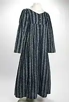 A Mother Hubbard dress is a long, wide, loose-fitting gown with long sleeves and a high neck. It is intended to cover as much skin as possible. It was devised in Victorian western societies to do housework in. It is mostly known today for its later introduction by Christian missionaries in Polynesia to "civilise" those whom they considered half-naked savages.[1]