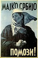 Mother Serbia (Serbian: Мајка Србија / Majka Srbija, Србија мати / Srbija mati; ), Serb Mother (Serbian: Српска мајка / Srpska majka) or Mother of All Serbs[1] (Serbian: Мајка свих Срба / Majka svih Srba), is a national personification of Serbia, which is the nation-state of Serbs. It was used as the metaphoric mother of all Serbs.[1] Serbian national myths and poems constantly invoke Mother Serbia.[2]