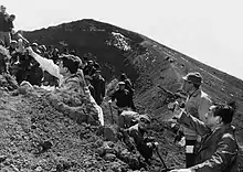 Toho had deemed Mothra's attack on New Kirk City too expensive and advised Honda and Sekizawa to write a more budget friendly climax. The new ending had Nelson and his crew take Shinji hostage near a volcano, which Nelson falls into after Mothra flaps her wings. Toho's contract with Columbia Pictures stipulated that the climax needed to take place in an American-style city. Toho sent a letter to Columbia Pictures requesting approval to change the climax but rather than wait for a reply, Toho instructed Honda to proceed with principal photography as planned. The new ending was the first scene to be filmed in Kagoshima Prefecture near Mount Kirishima. However, around the same time, Columbia Pictures denied Toho's request for alterations. Surviving images of the alternate ending appeared in official publicity materials, however, the footage was never developed. While filming the alternate ending, the Nelson dummy used to be plunged into the volcano was later found by locals, who believed it to be a suicide. Authorities retrieved the "body", which led to Honda and his crew to be "roundly scolded".[56][57]