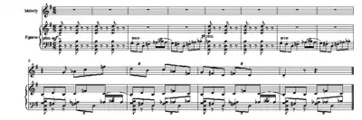 A phrase originally presented as a motif may become a figure which accompanies another melody, as in the second movement of Claude Debussy's String Quartet (1893).[1] Play  White would classify the accompaniment as motivic material since it was, "derived from an important motive stated earlier".[2]