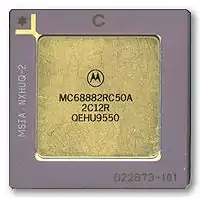 The Motorola 68881 and Motorola 68882 are floating-point units (FPUs) used in some computer systems in conjunction with Motorola's 32-bit 68020 or 68030 microprocessors. These coprocessors are external chips, designed before floating point math became standard on CPUs. The Motorola 68881 was introduced in 1984.[1] The 68882 is a higher performance version produced later.