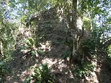 Motul de San José lies on a limestone plateau at the northern edge of the fault depression that underlies the central lakes of the Petén Basin.[9] The local topography consists of ridges, generally running east–west or northeast–southwest alternating with lower-lying areas with clay soils. These low-lying areas tend to feed into drainage systems flowing into either Lake Petén Itzá itself or into the Akte River. The Kantetul River is a seasonal watercourse with its origin 5 kilometres (3.1 mi) to the northeast of the site and flowing westwards into the Akte River, passing 2 kilometres (1.2 mi) from the site core.[10] The Akte River in turn flows west into the San Pedro River, which flows northwest into Mexico where it joins the Usumacinta River and ultimately empties into the Gulf of Mexico. A mixture of ancient and modern agricultural terraces line the riverbank, 2 kilometres (1.2 mi) north of the site core.[11] Access to water was crucial for Maya cities, since much of the Maya lowlands have been described as a seasonal desert due to the combination of a prolonged dry season lasting between four and six months together with the limestone geography that makes surface water scarce.[12] In addition the Maya greatly preferred water to land transport and used canoes to trade extensively by river and sea, and access to river routes connected cities to extensive trade routes.[13]