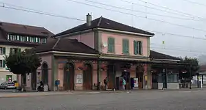 Moudon railway station (French: Gare de Moudon) is a railway station in the municipality of Moudon, in the Swiss canton of Vaud. It is an intermediate stop on the standard gauge Palézieux–Lyss line of Swiss Federal Railways.[1]