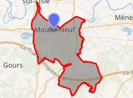 Moulin-Neuf (French pronunciation: [mulɛ̃ nœf]; Occitan: Molin Nuòu) is a commune in the Dordogne department in Nouvelle-Aquitaine in southwestern France. It is about 50 km northeast of Bordeaux.